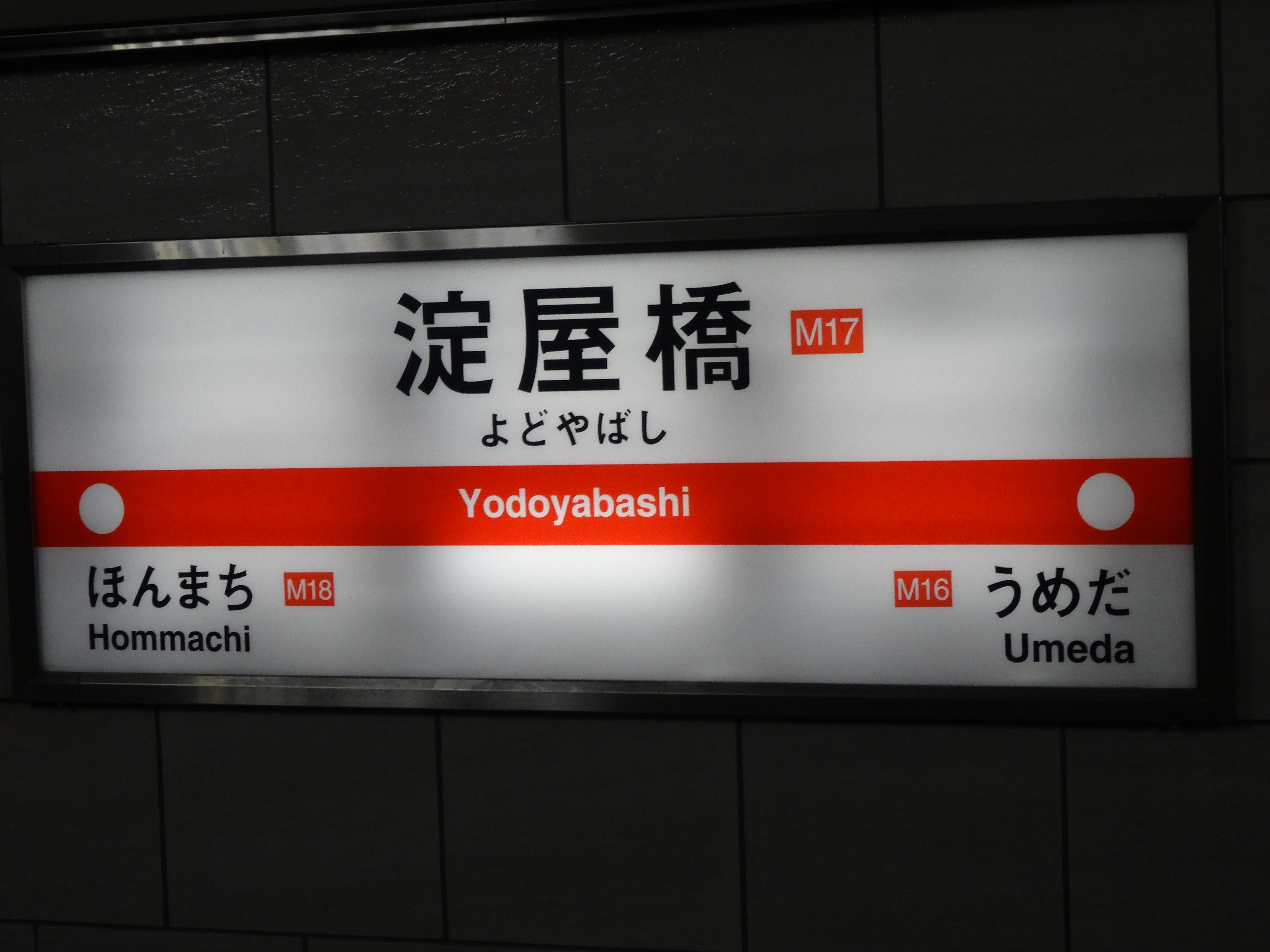 Schild in U-Bahn Station Yodoyabashi