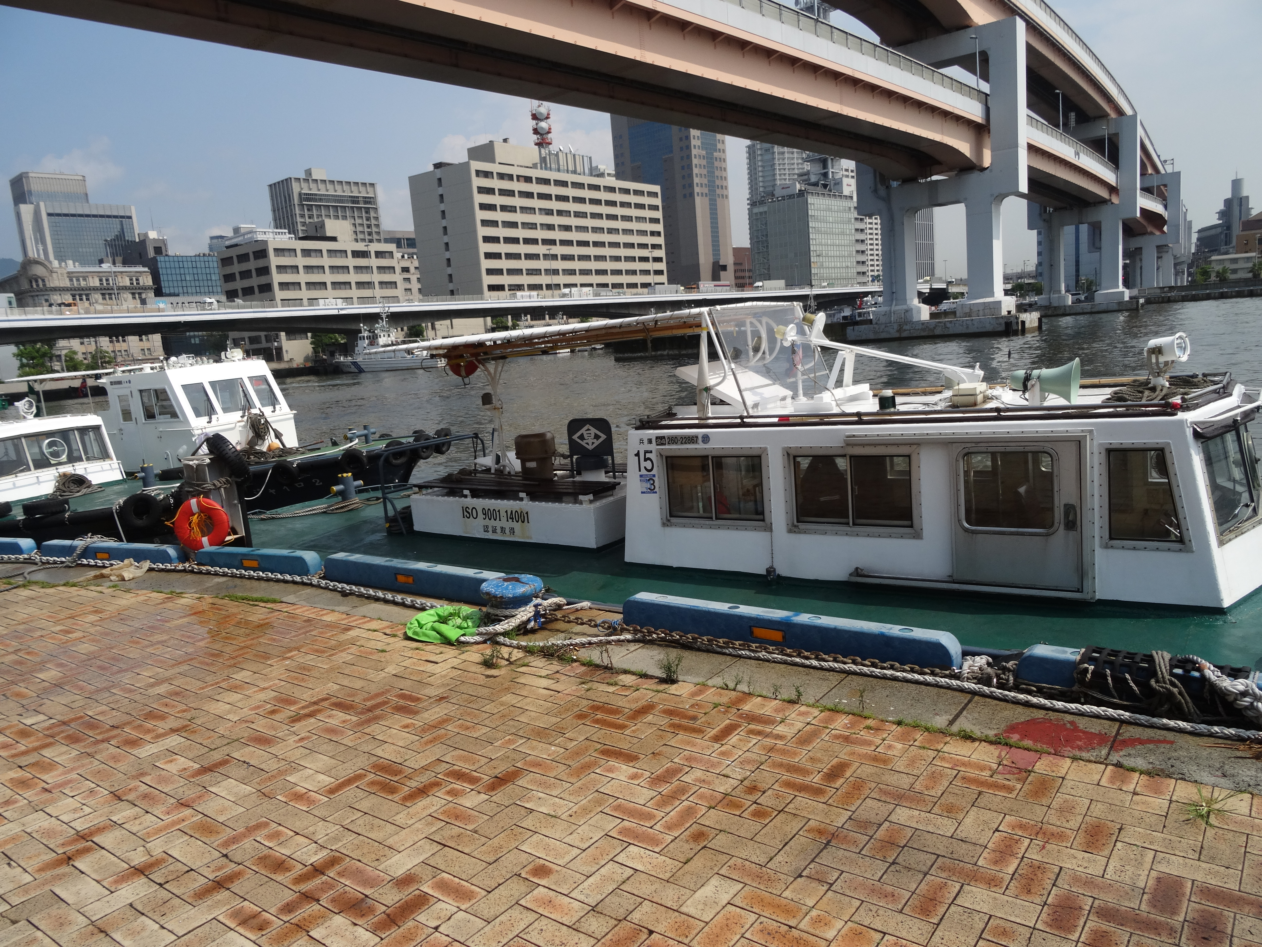 Ein Schiff im Hafen von Kobe ...