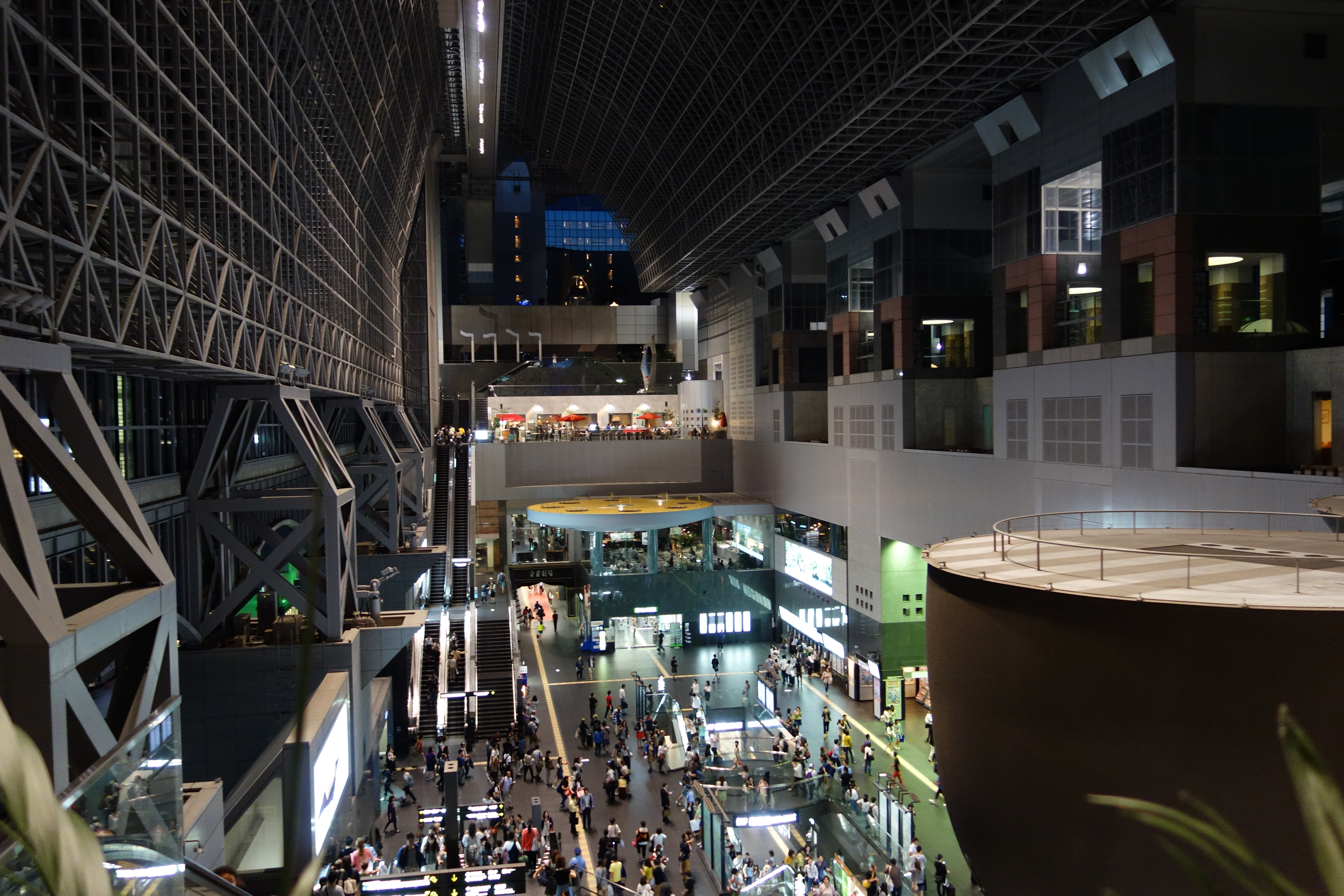 So sieht die Vorhalle der Kyoto-Station bei Nacht aus.