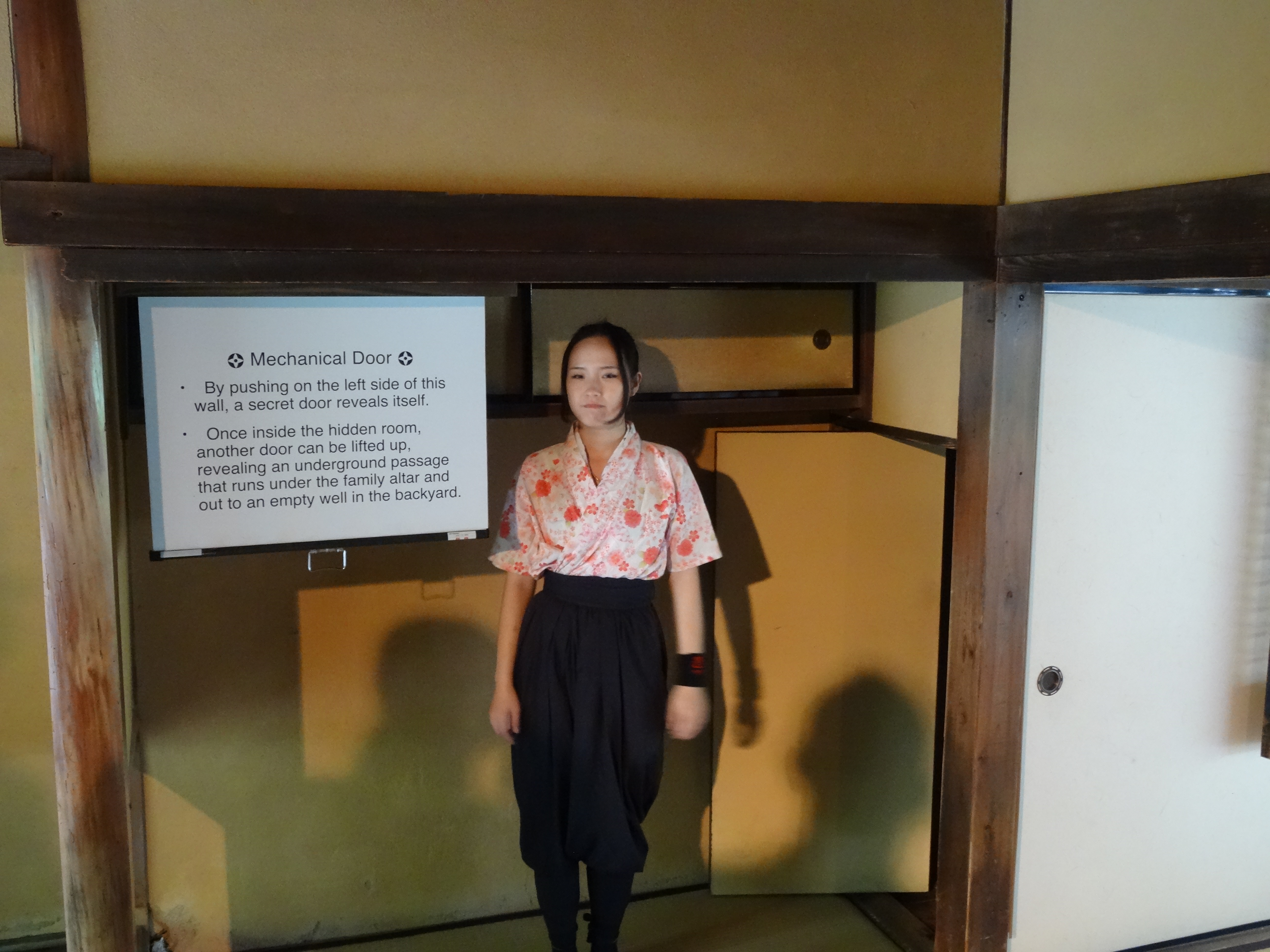 Sie führte uns durch das Ninja-Haus und erklärte uns die ganzen versteckten Mechanismen des Hauses. Sie war recht flink durch diverse Geheimgänge verschwunden und kam wo anders wieder hervor.