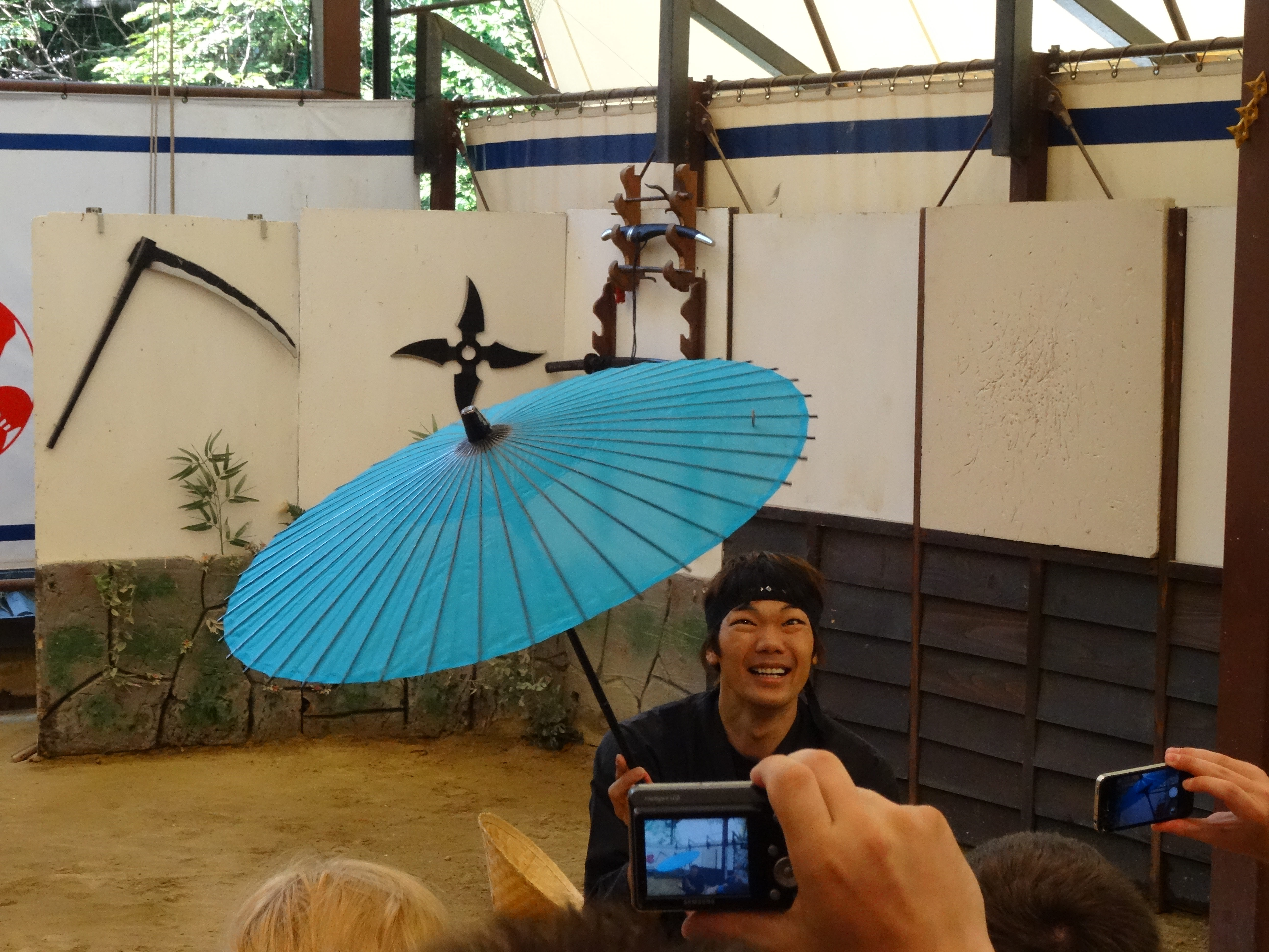 Er hat den Sonnenschirm mindestens 1-2 Minuten lang gedreht.