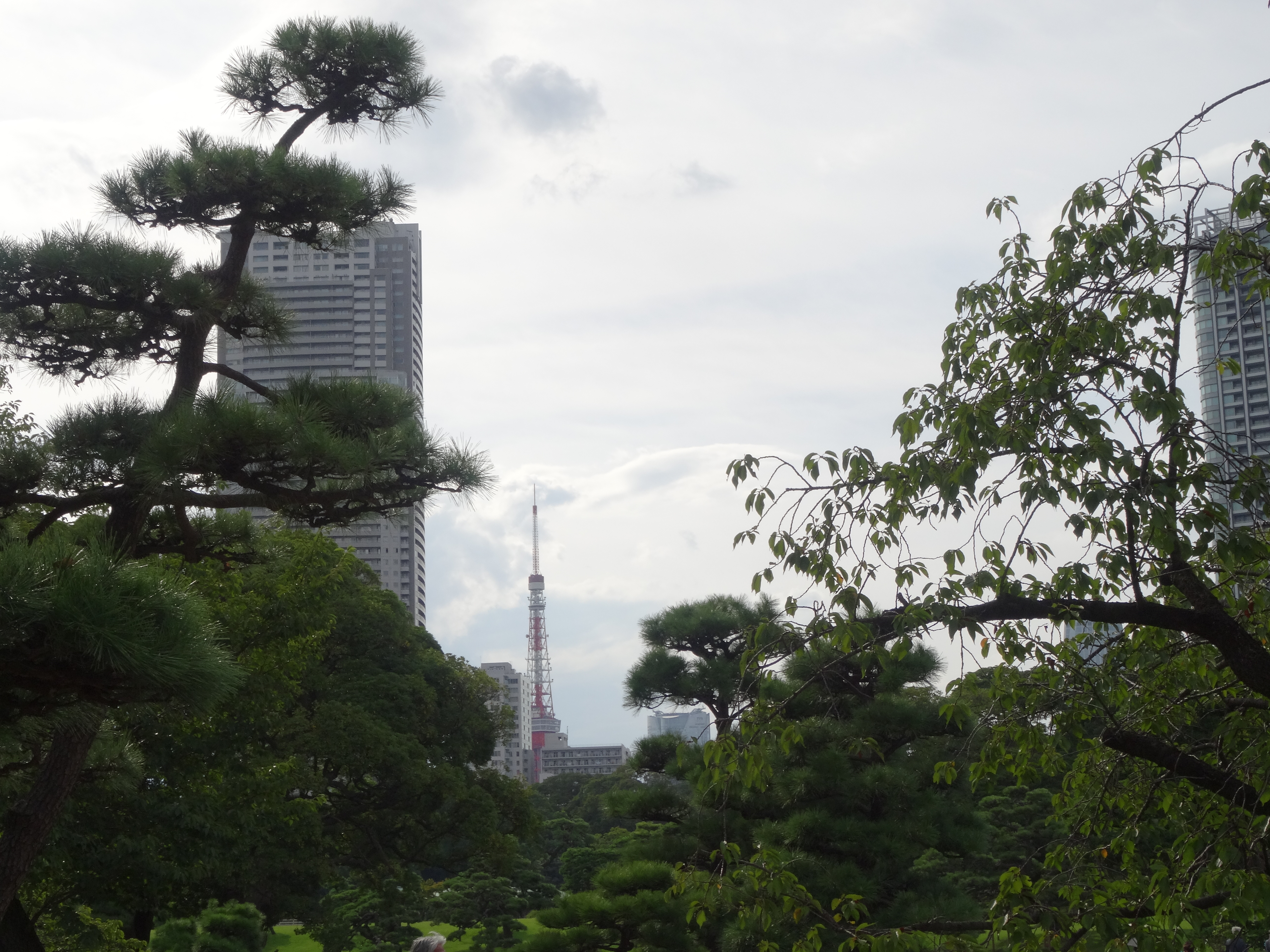 Hamarikyu-Park und Tokyo-Tower im Hintergrund