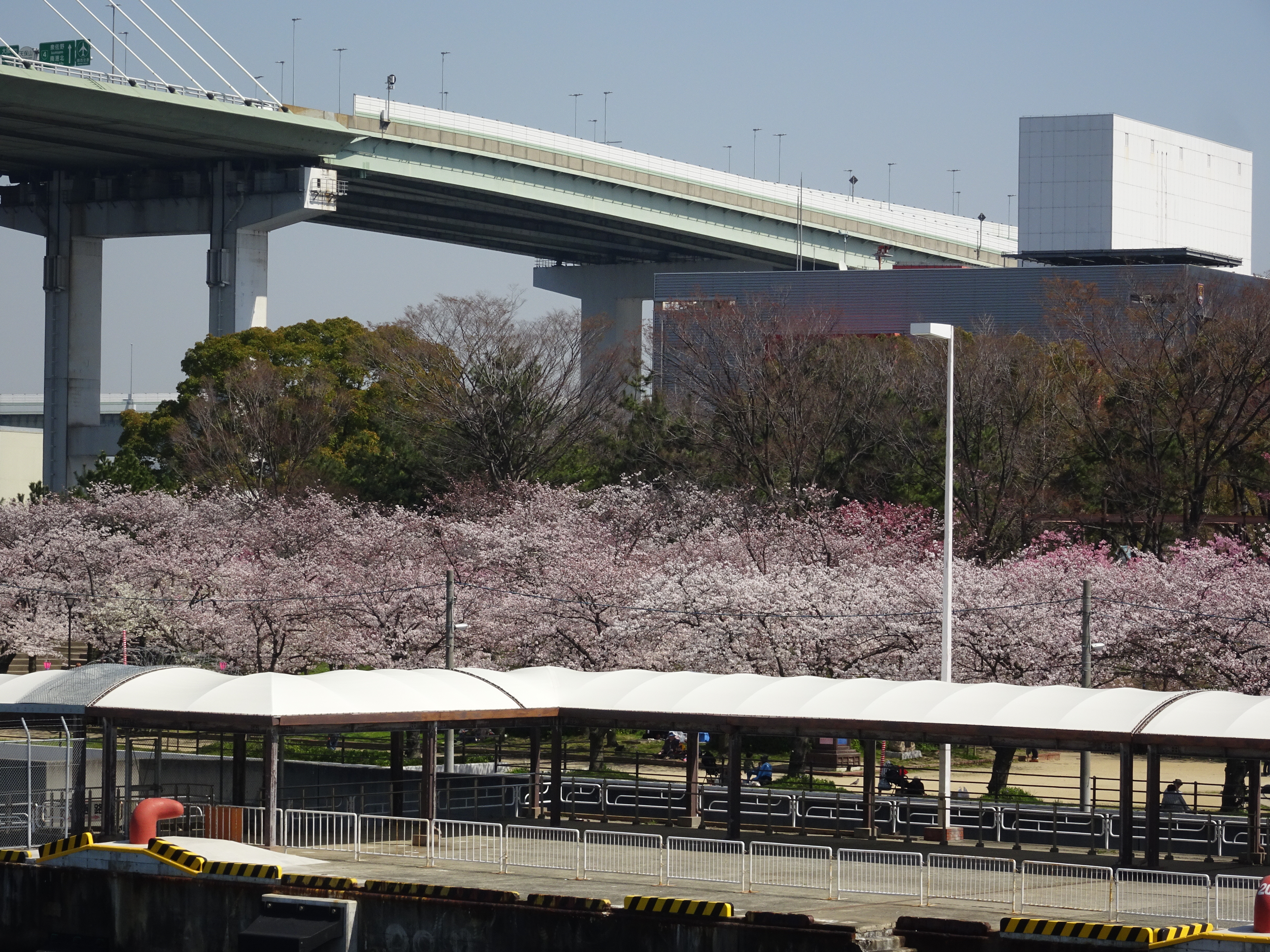 Kirschblüten entlang des Hafens von Osaka